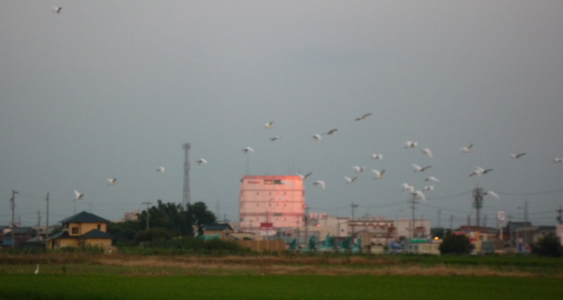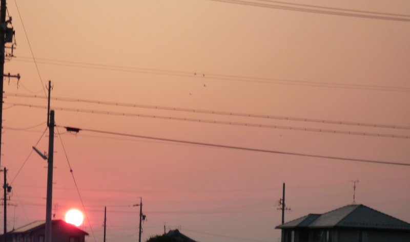 ビルに真っ赤な夕日が 振り向けば太陽が