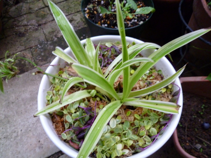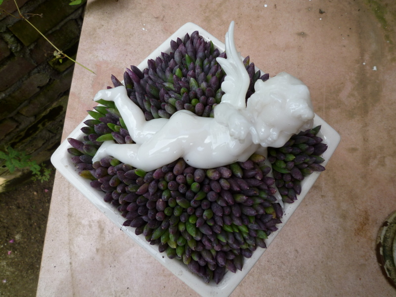 天使が横たわる寄せ植えです。