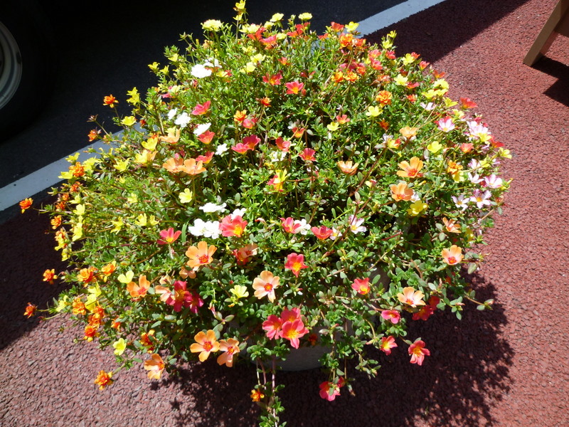 ポーチュラカが病院の駐車場に咲いていました。