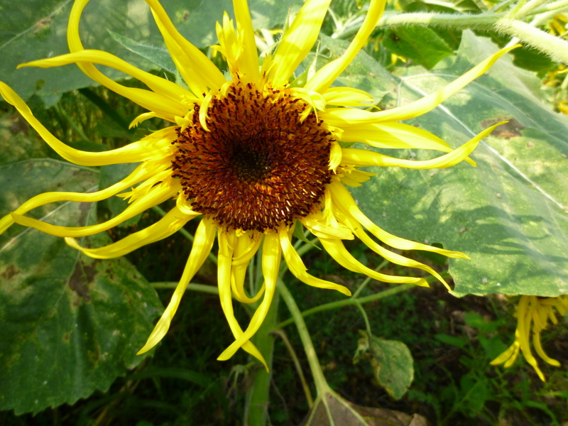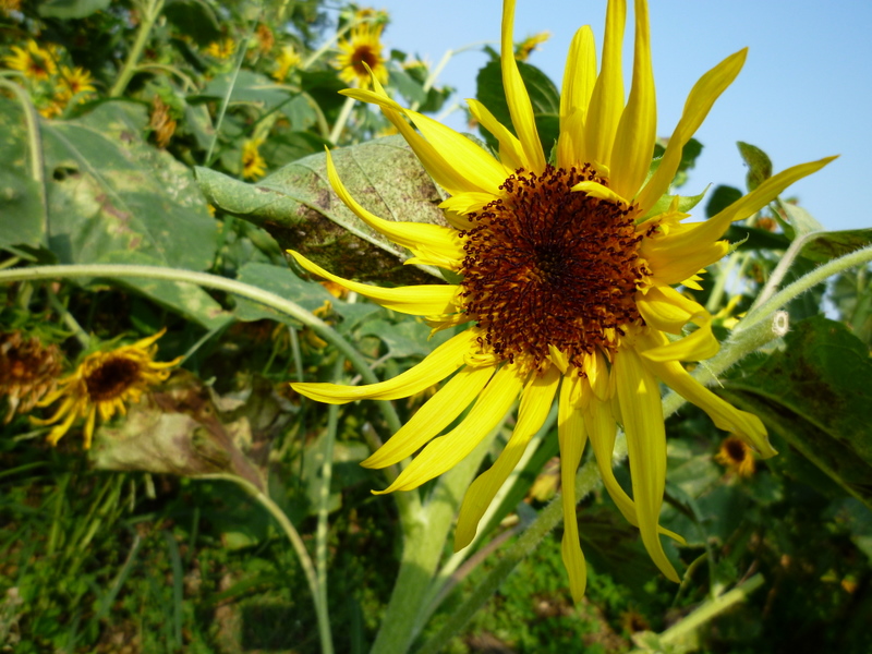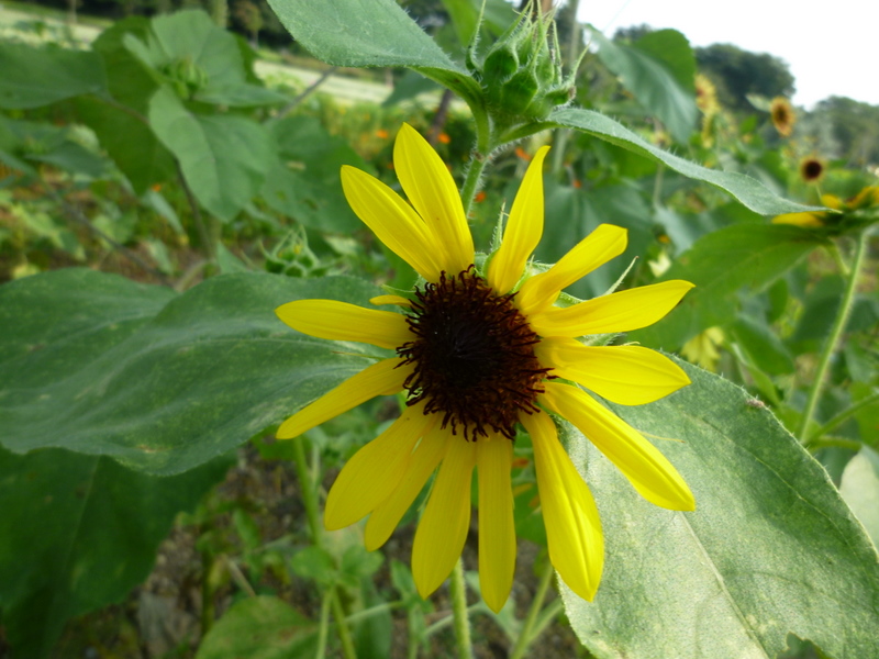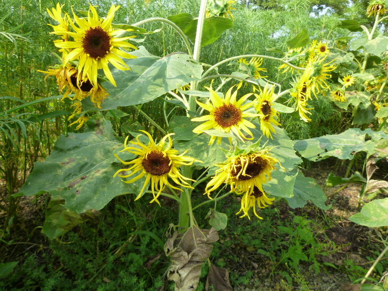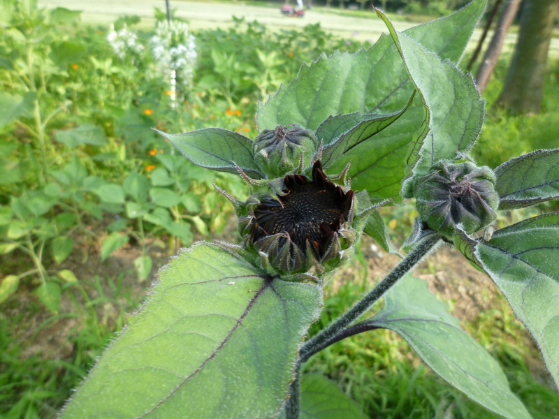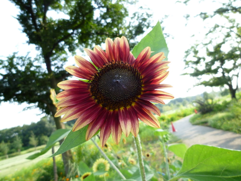 ヒマワリはお日様を追っかけて咲いているものばかりと思っていました。